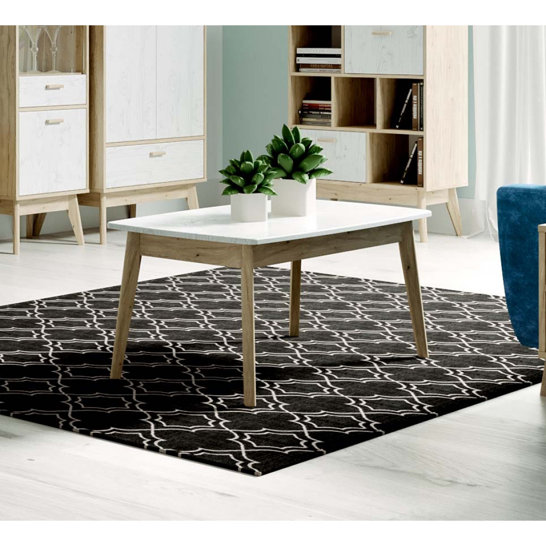 Ультратрендовый журнальный стол Калгари от Мебельград, выполненный в светлых тонах с элементами сдержанного стиля 60-х - высокие ножки, выраженная деревянная текстура натурального дуба, четкие формы. Вся мебель очень мобильная, компактная, вызывает чуство легкости и свободного пространства, при этом она функциональна.