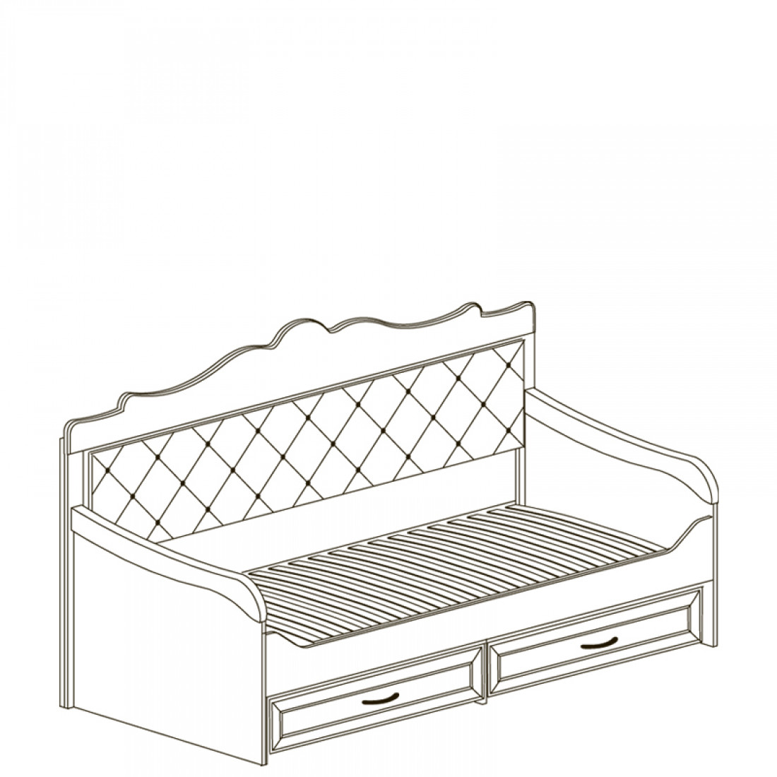 Корпус: ДСП, декор – кремовый белый. Основание кровати – ламели