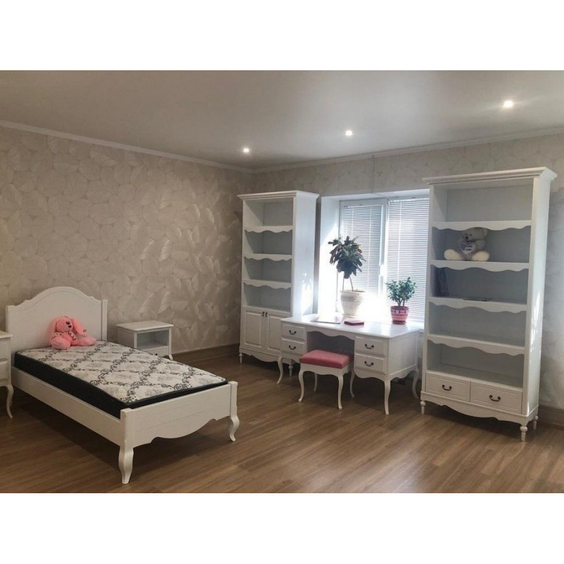 Кровать оснащена ортопедическим основанием для матраса — ламелями.